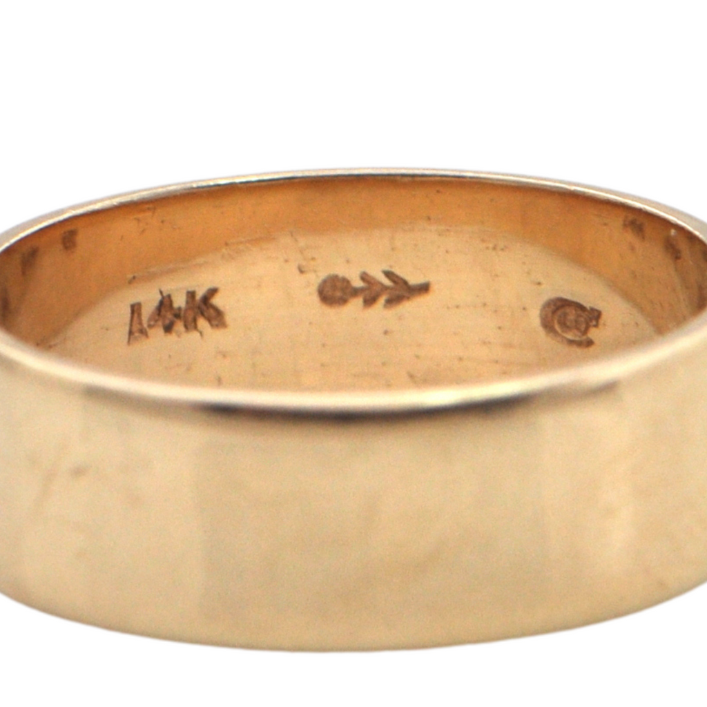 Vintage solid 14k yellow gold cigar band ring. Designed to resemble the band on a cigar, the cigar band ring style has seen a jump in popularity recently.