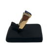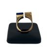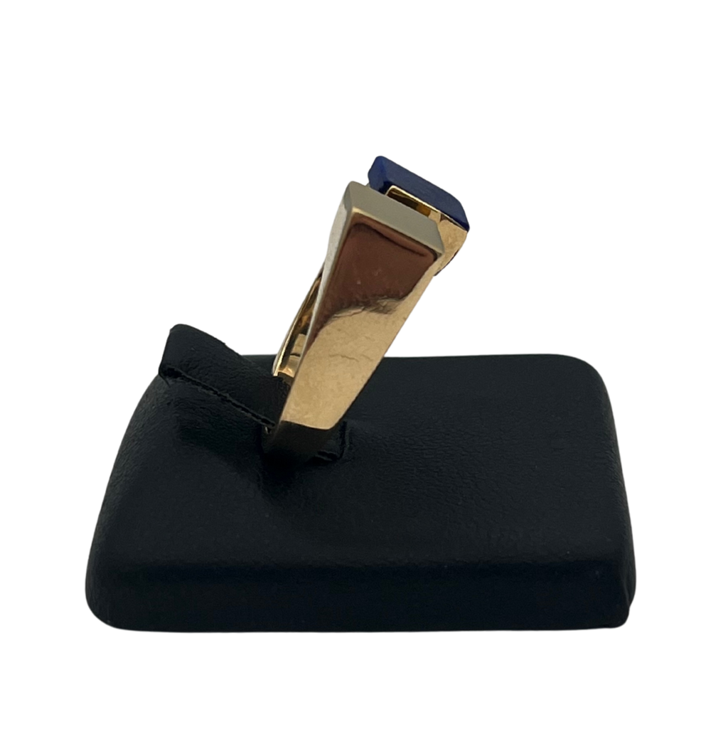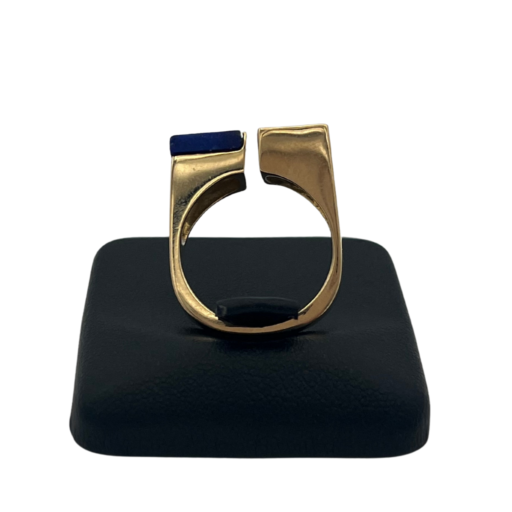 Vintage 18k yellow gold open-design ring with geometric square high polish gold and lapis lazuli.