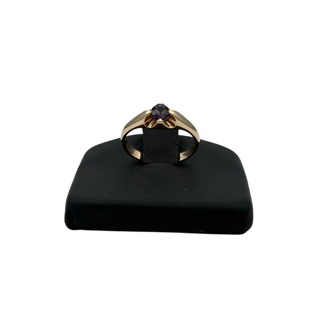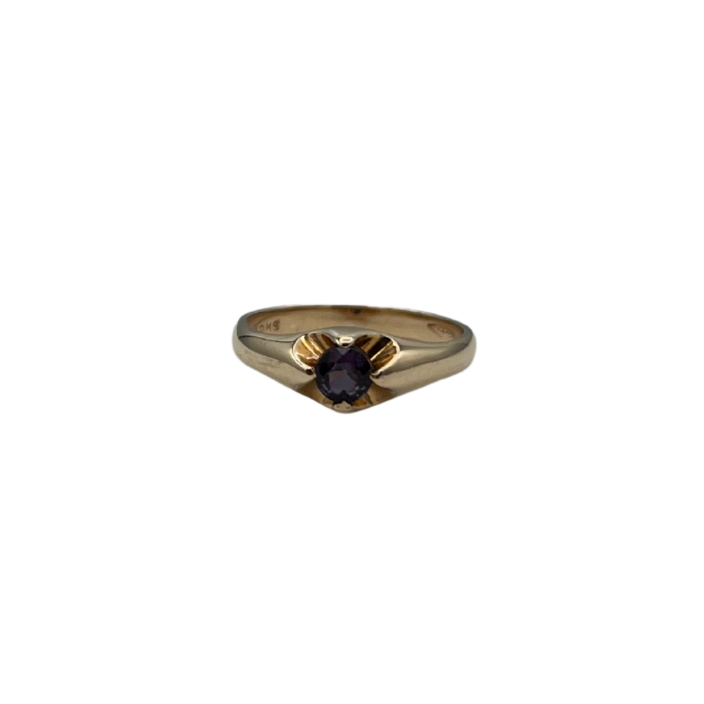 A sweet little Amethyst solitaire ring in 10k yellow gold.