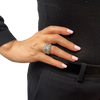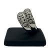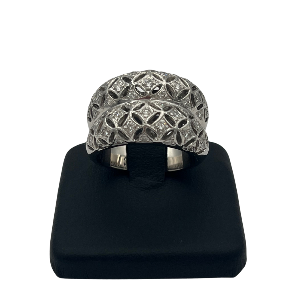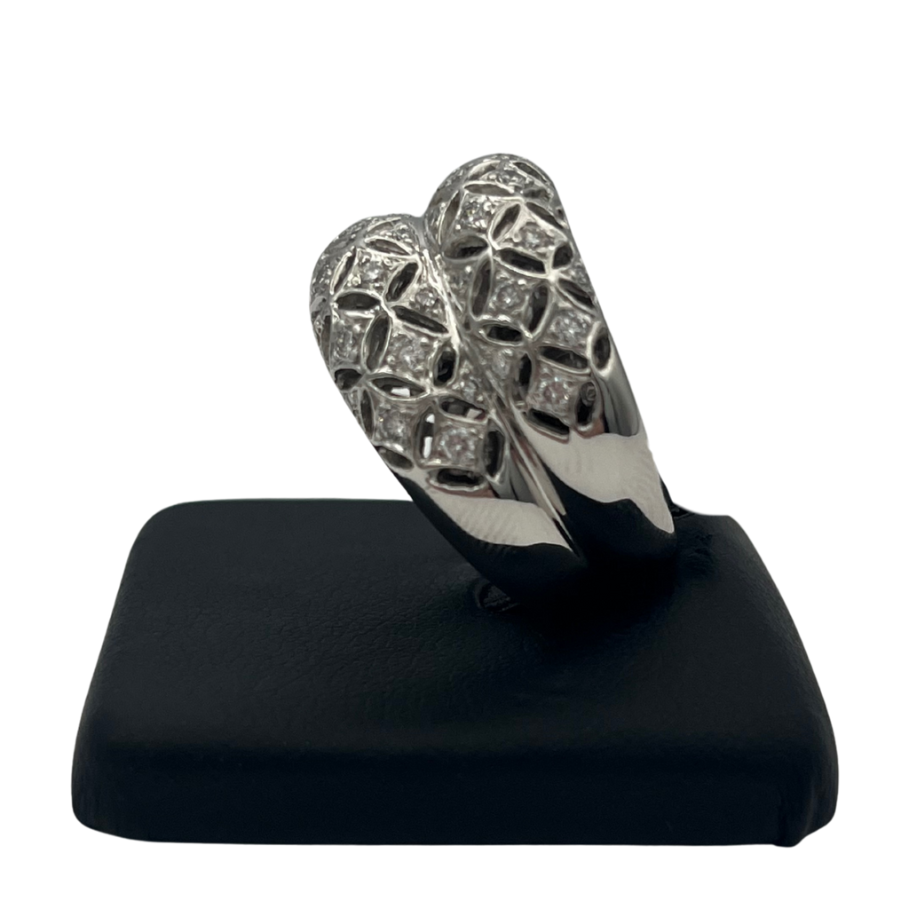Vintage diamond and 18k white gold double-barrel double ring with a 'Florentine' open motif.