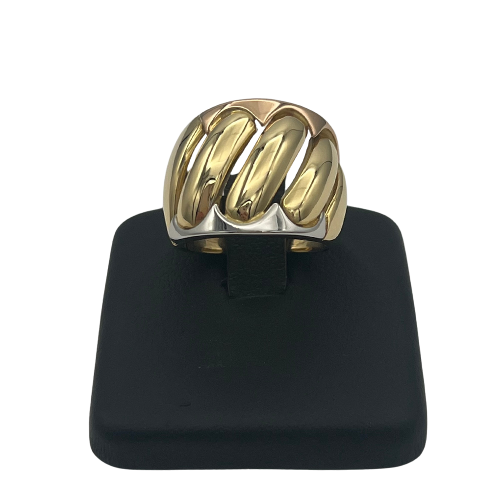 Vintage Italian Solid 18k Three-Tone Gold Open Motif Ring