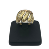 Vintage solid 18k yellow gold ring with white and rose gold accents and an open ridged design.