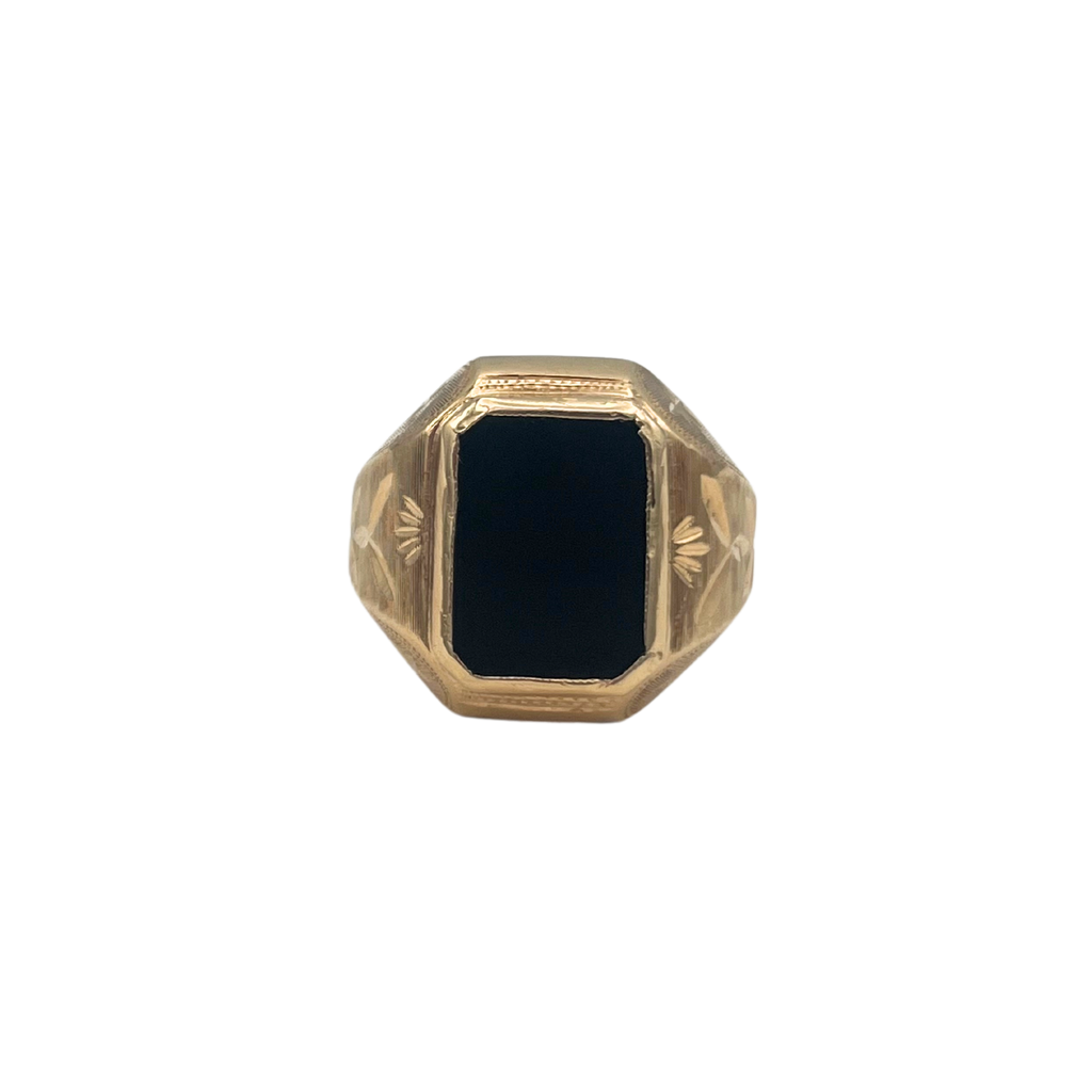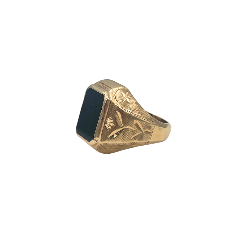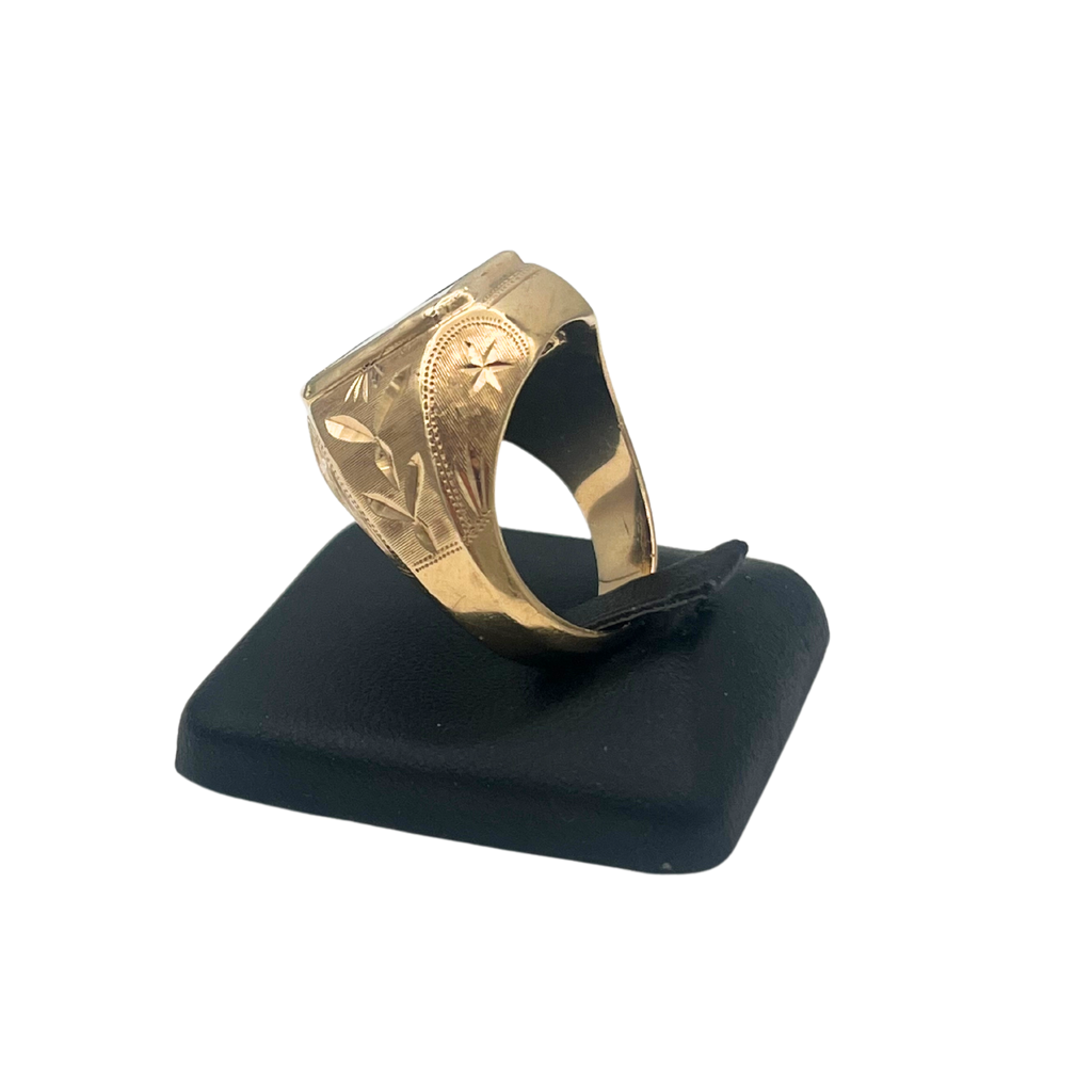 A stunning Hand engraved men's ring in 14k yellow gold.