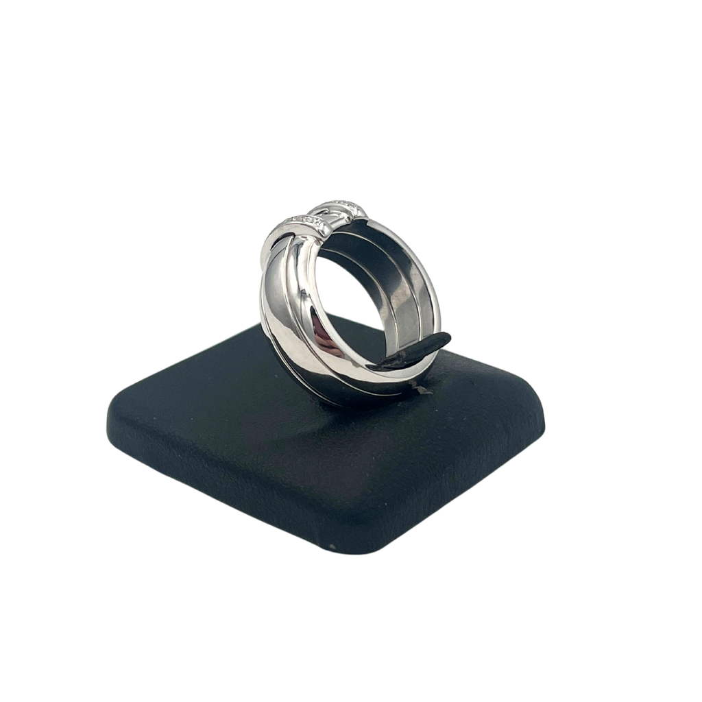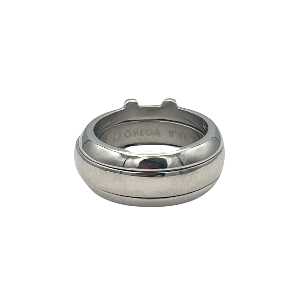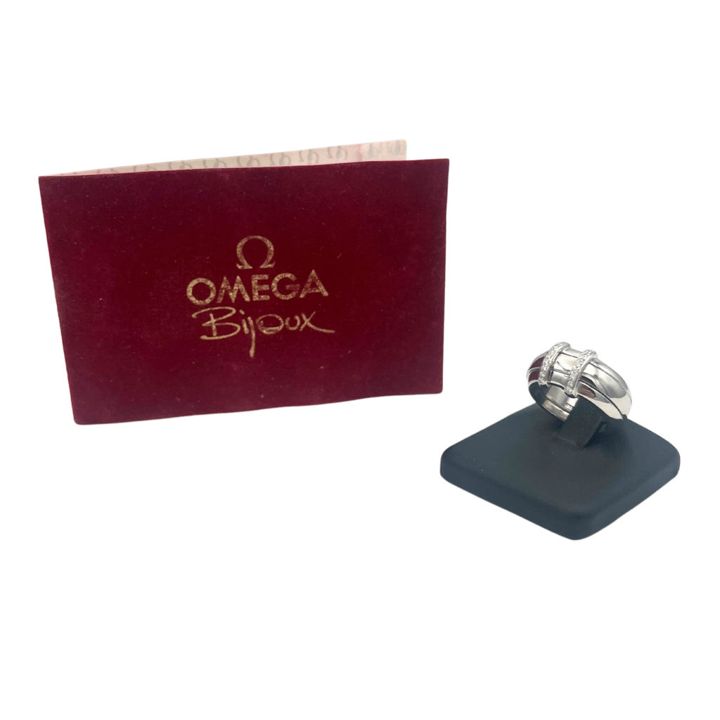 A wonderfully made diamond ring by renown watch maker Omega. The center gold band is removable and fits seemless between the gap in the diamond ring.