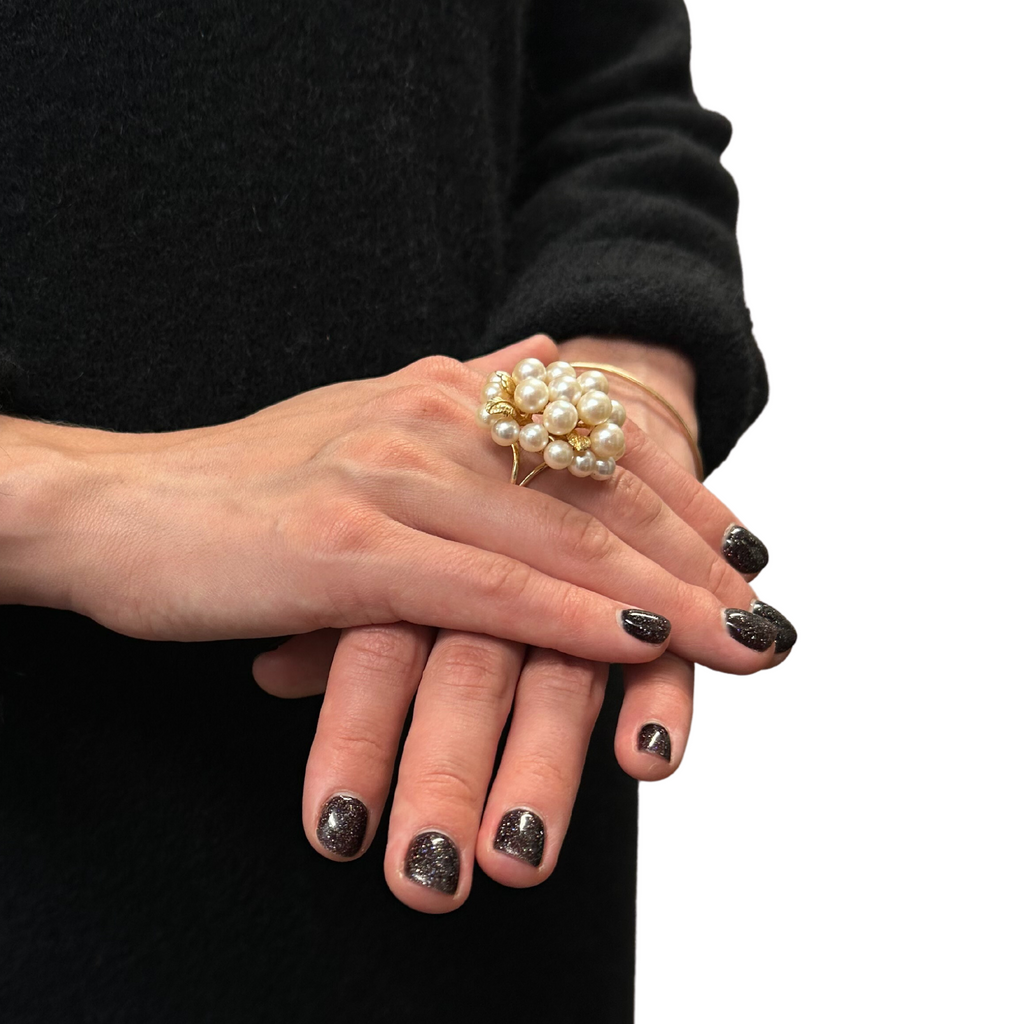 Vintage Pearl and Gold Leaf Cluster Ring