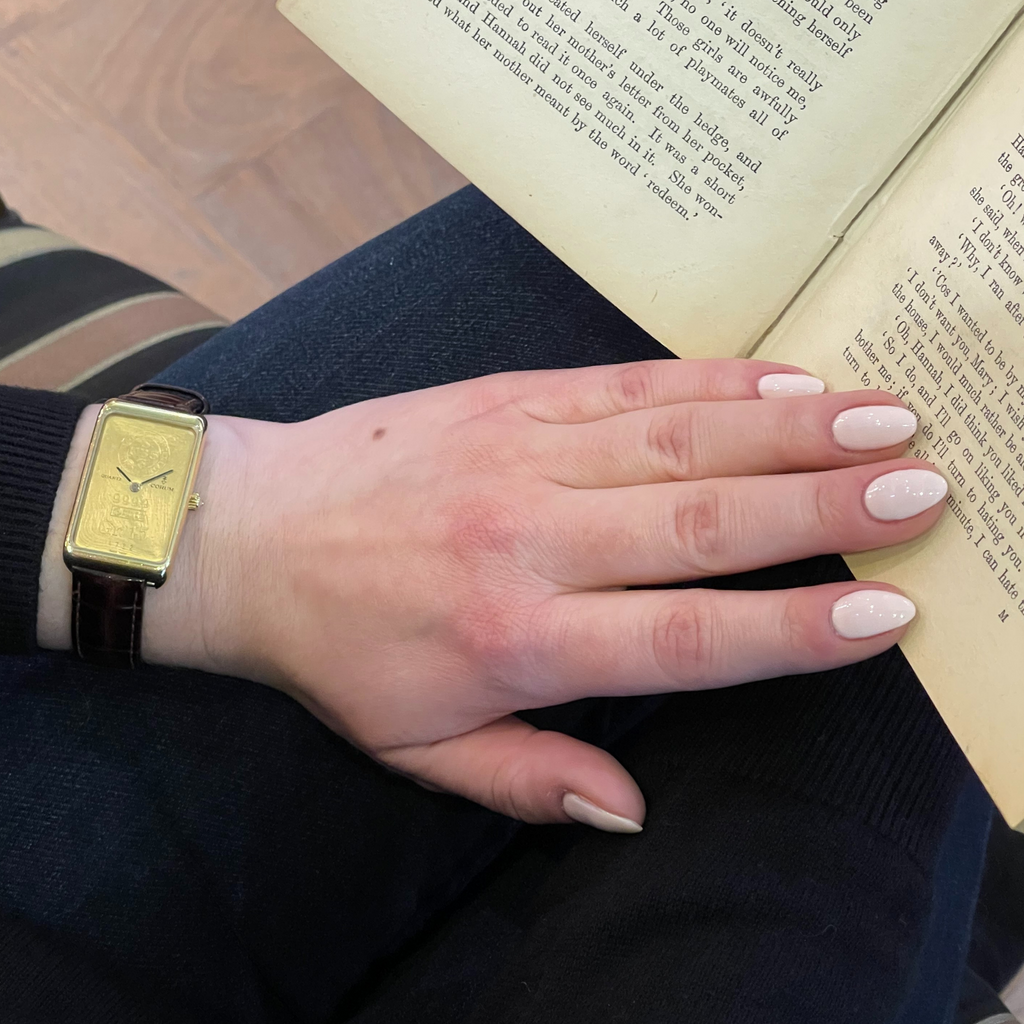 Corum 18k yellow gold large 15 gram gold ingot wrist watch.