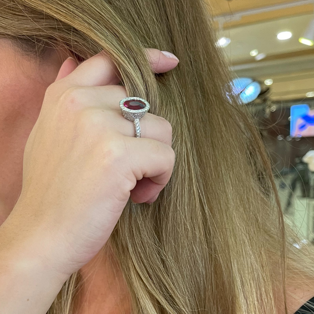 5.01ct Rubellite and Diamond 18k White Gold Ring