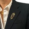 Metal: 14/18k yellow gold brooch and pin, silver stone setting (acid tested)