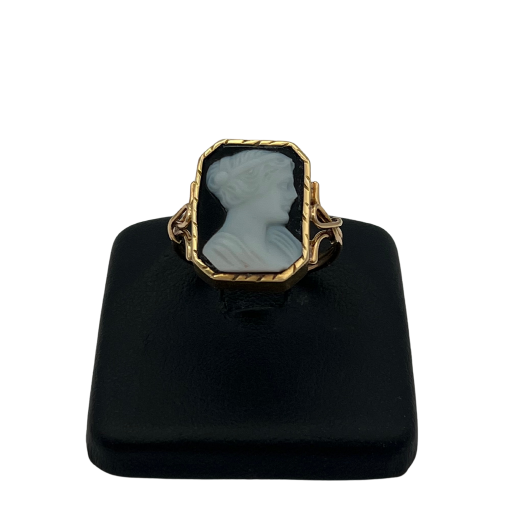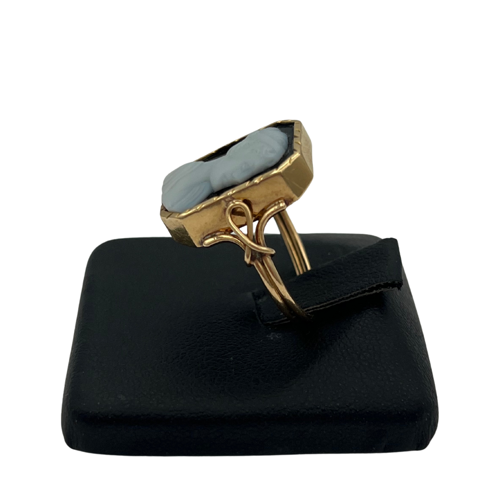 Antique Black Onyx Cameo 18k Rose Gold Ring