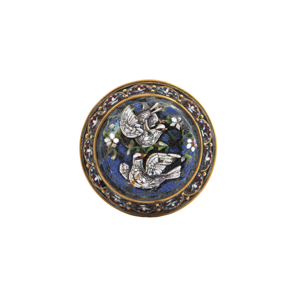 Micro-mosaics are a type of mosaics comprised of tiny fragments of glass called tesserae, hand arranged on a copper or gold tray to create a scene, portrait, or landscape. The process is extremely laborious and a painstaking skill.