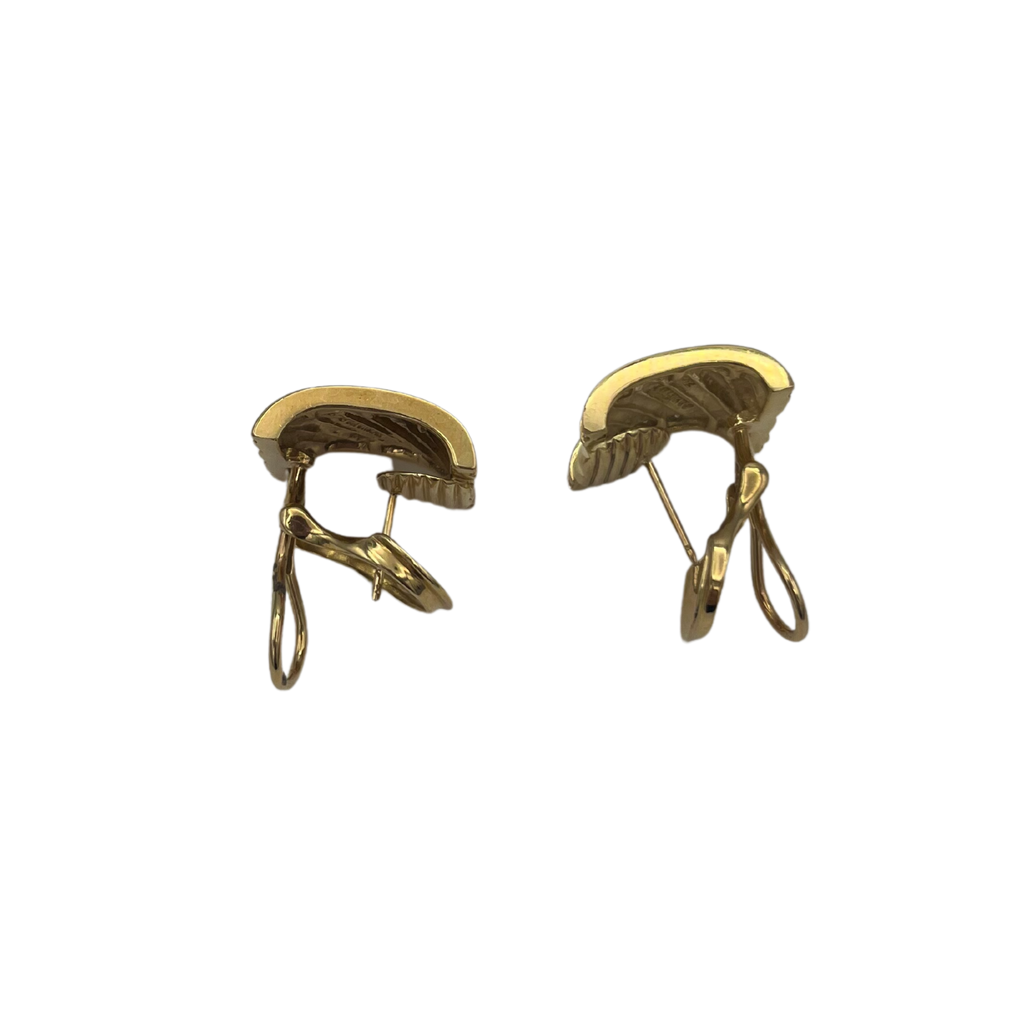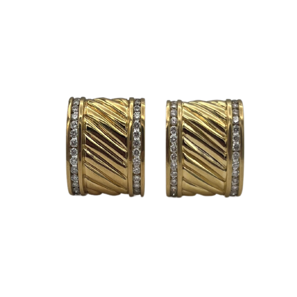 A very fine quality 18k yellow gold and diamond pair of ear clips, by, David Yurman, with the double back ear clip to provide extra solid support on the ear. The diamonds are all channel set. Very rare to find, as these are in excellent condition, never repolished, minimal scratch marks (from the 90's).