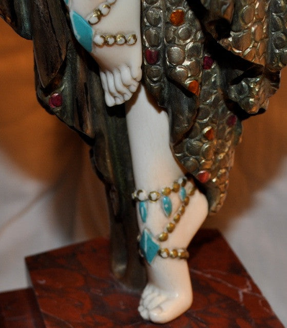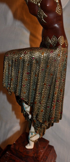 A rare example of Art Deco’s most sought after sculptor. It is in exceptional condition , rising almost 24” tall sitting on a red mottled marble base.